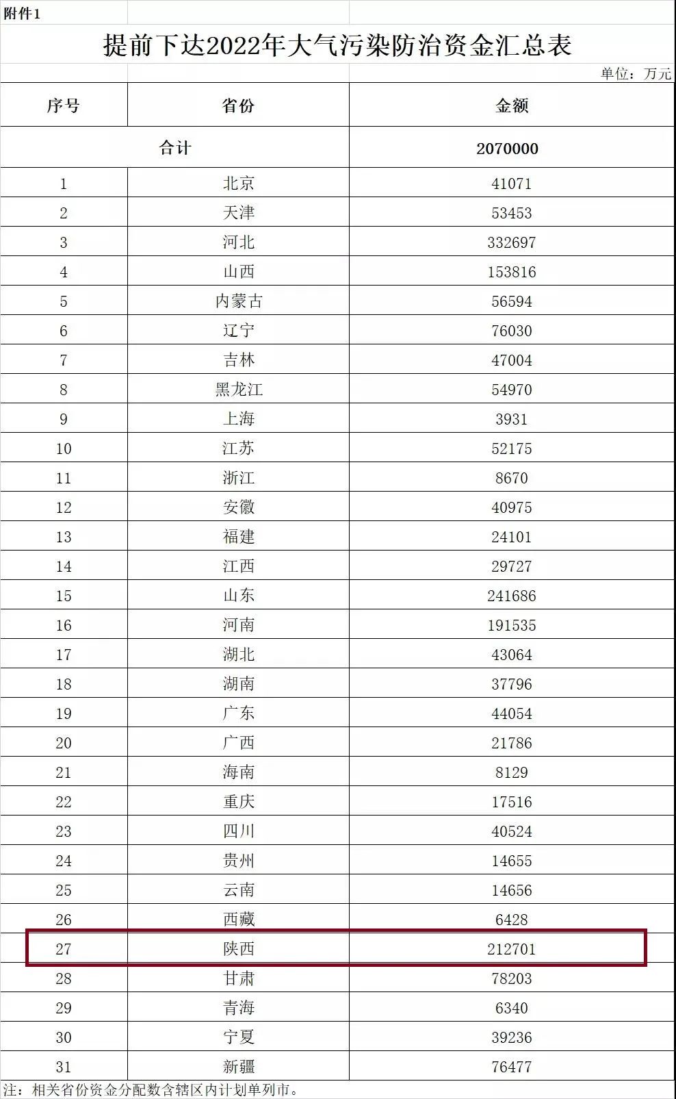 207亿支持清洁取暖,陕西21亿!财政部提前下达2022大气污染防治资金![]()